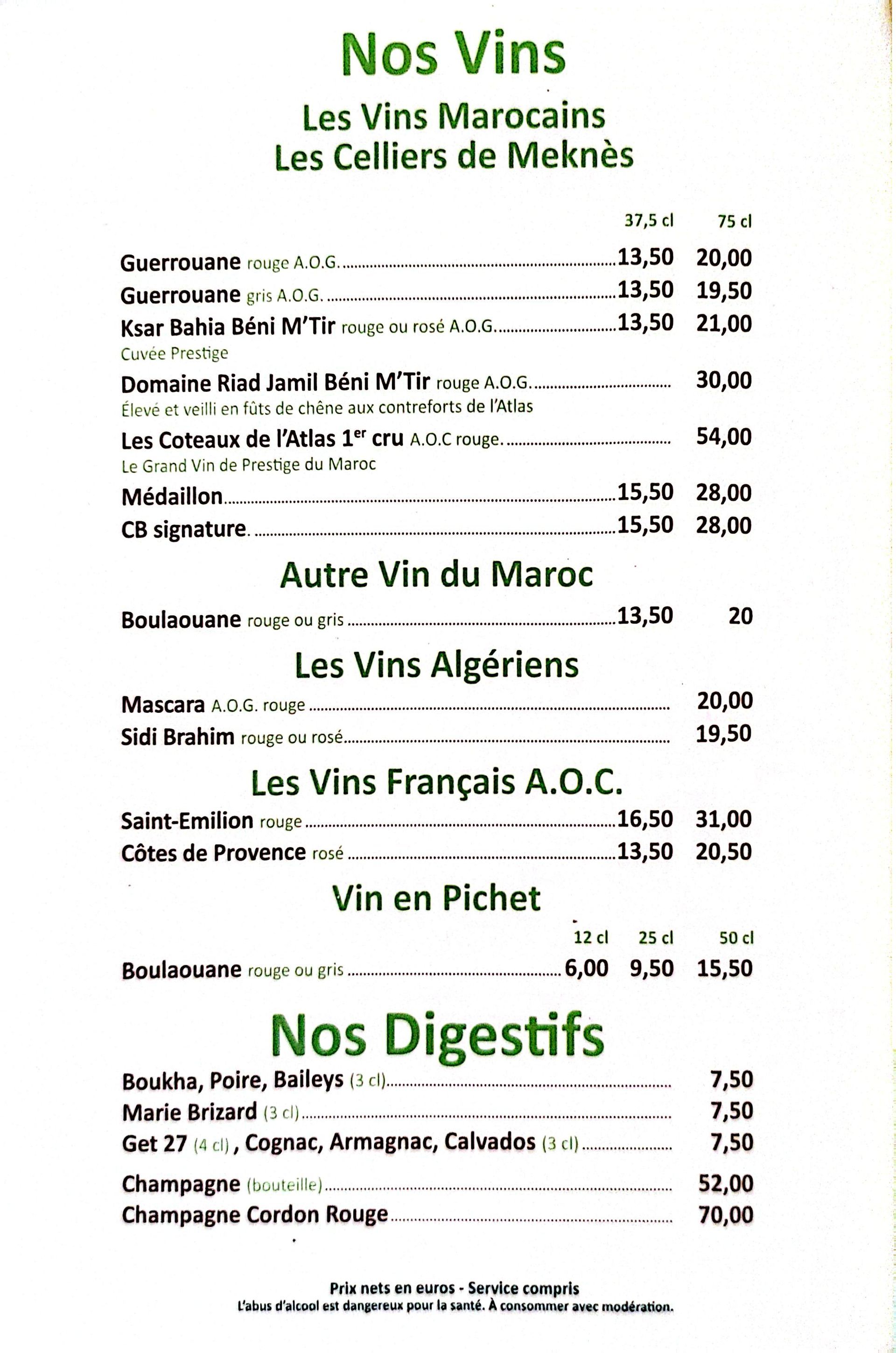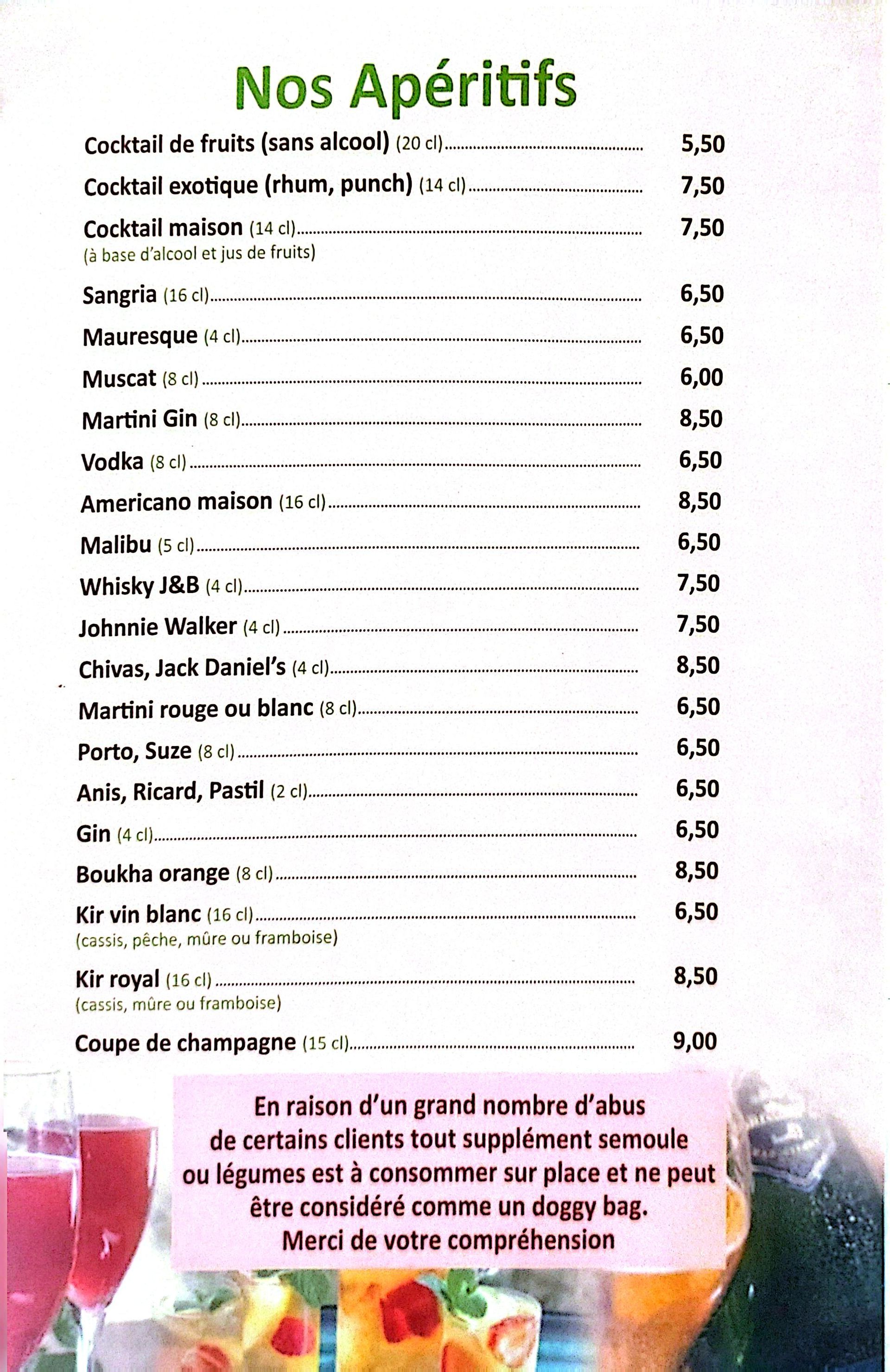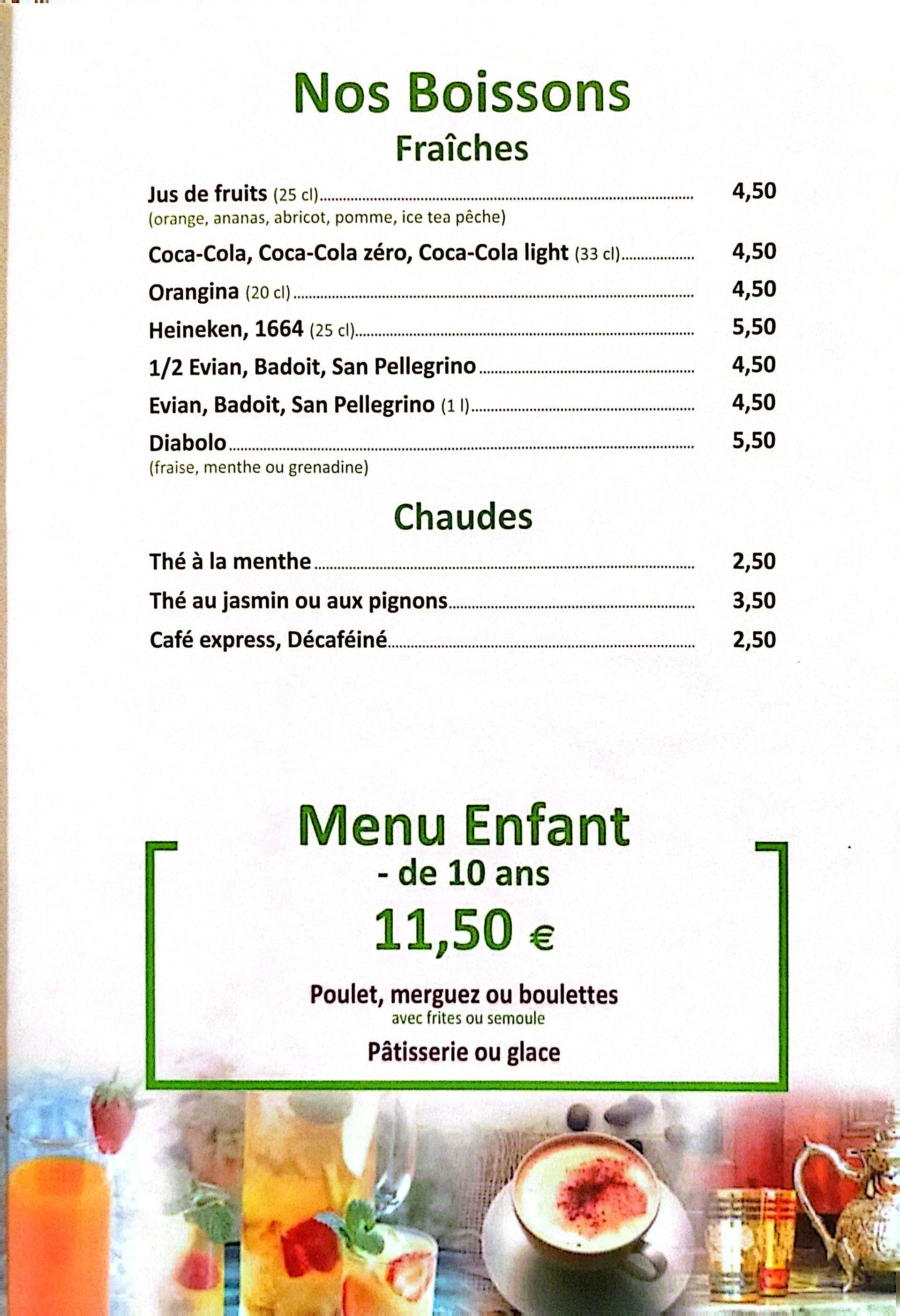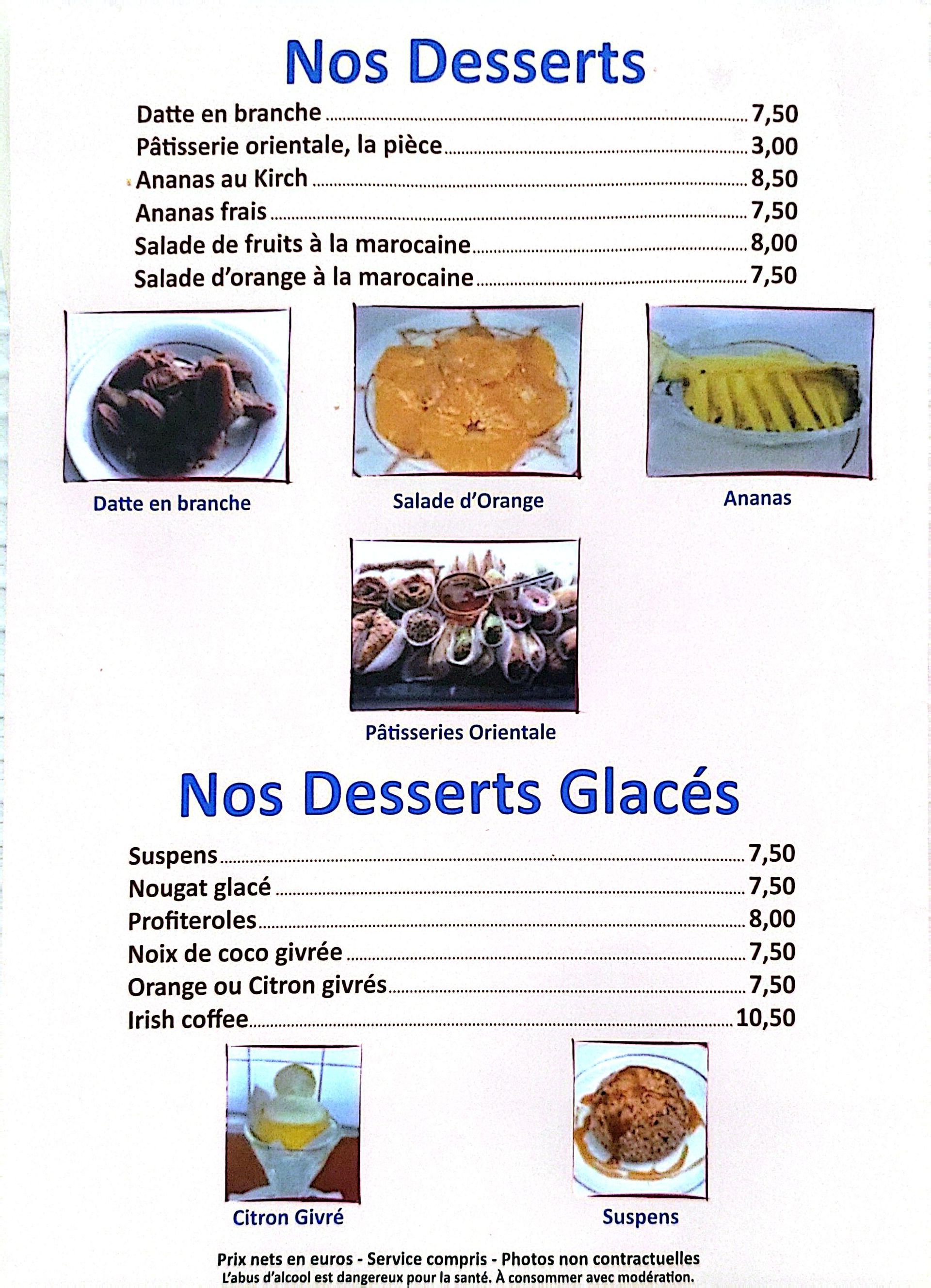Nous proposons à la carte : tajines, couscous ou grillades.